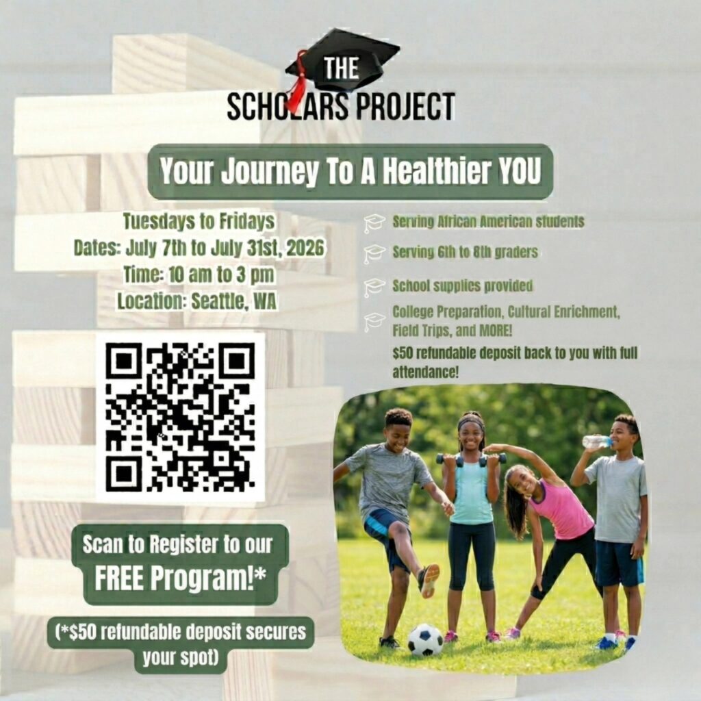 The Scholars Project 2026 registration is open! This year’s theme is “A Journey to a Healthier YOU”. The Scholars Project is Tuesdays – Fridays from July 1st – 311st, 2026 from 10am – 3pm. This is a free program serving African American Middle School Students.
